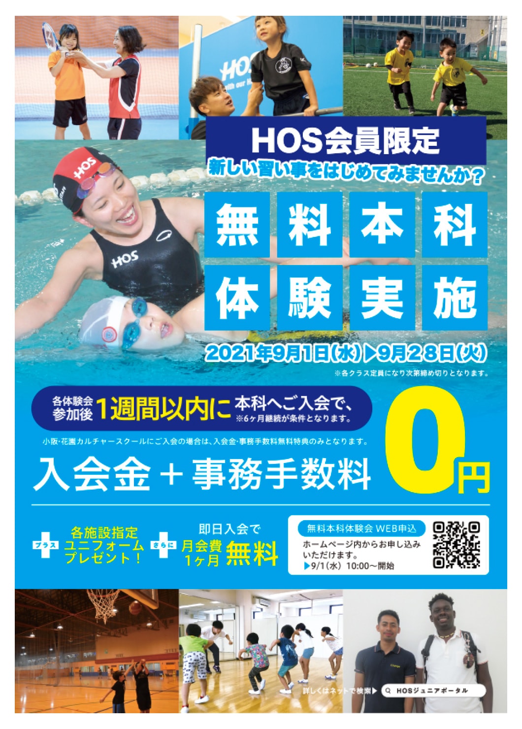 ※6ヶ月継続が条件となります。 ※小阪カルチャースクールにご入会の場合は、入会金・事務手数料無料特典のみとなります。